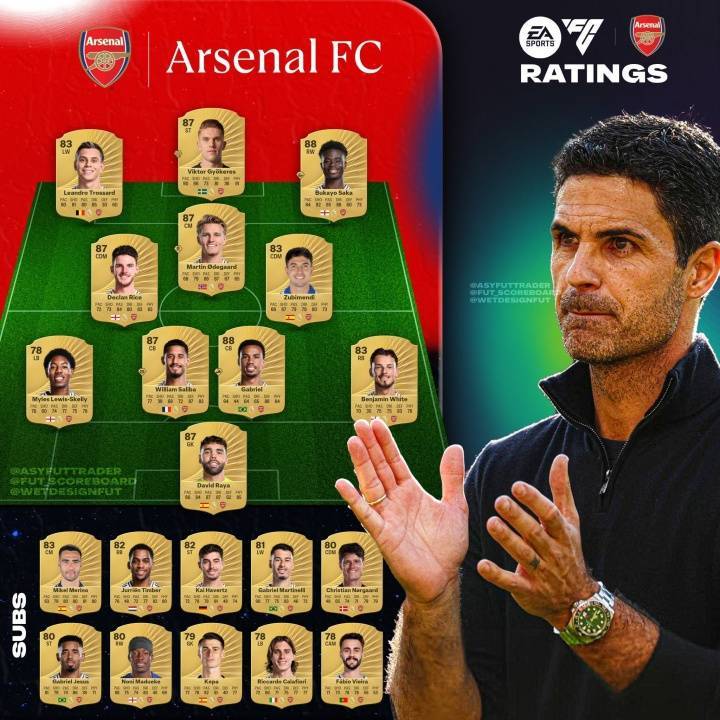7人87+!EAFC26阿森纳球员评级:萨卡加布88,约克雷斯、厄德高87